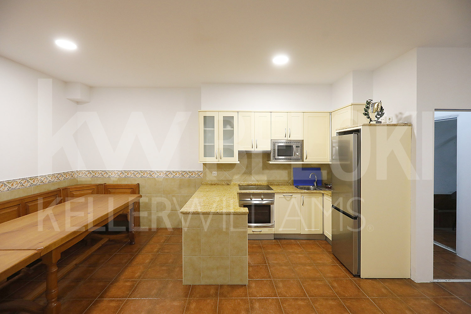 Un amplio salón comedor que invita a reunirse, con chimenea y salida directa a la terraza. Una sala versátil para despacho, estudio o rincón creativo. Cocina independiente con salida a una terraza acogedora, y un aseo de cortesía.