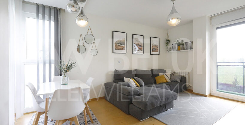 Al entrar, nos recibe un amplio y acogedor salón-comedor con salida a balcón corrido y con grandes ventanales que aportan mucha luz y una agradable sensación de amplitud . La cocina independiente, totalmente equipada, tiene acceso a un balcón con zona de lavandería, proporcionando comodidad y practicidad en el día a día.