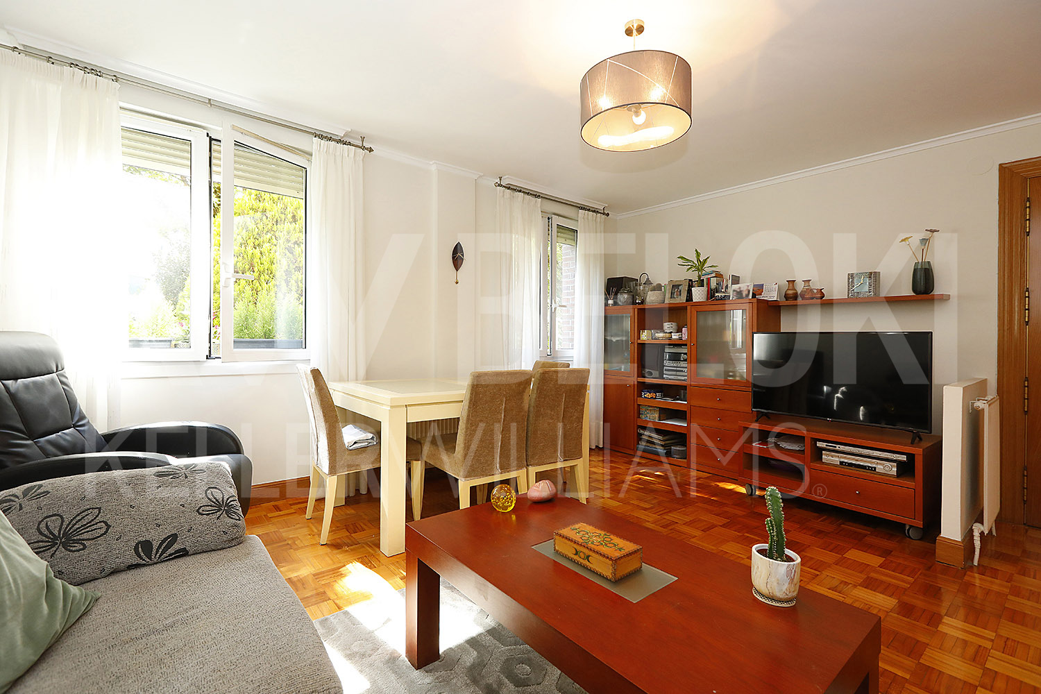 La vivienda cuenta con un amplio y luminoso salón comedor, ideal para descansar y tener agradables momentos en familia. La cocina independiente, de estilo moderno y completamente equipada, es exterior, lo que garantiza una excelente ventilación e iluminación natural.